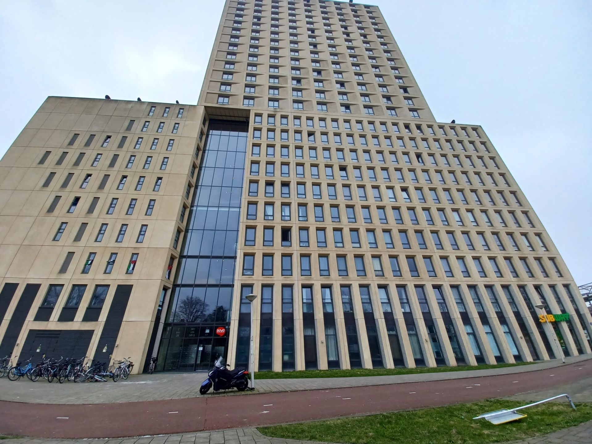 Onze locatie Amsterdam 1 ligt op de vijfde verdieping van een groot studentencomplex, dichtbij station Lelylaan. In het gebouw hebben we acht studio’s waar studenten zelfstandig wonen. Elke studio heeft een eigen keuken en badkamer, zodat je je dagelijkse routine op jouw manier kunt invullen.