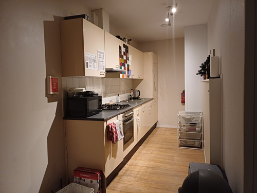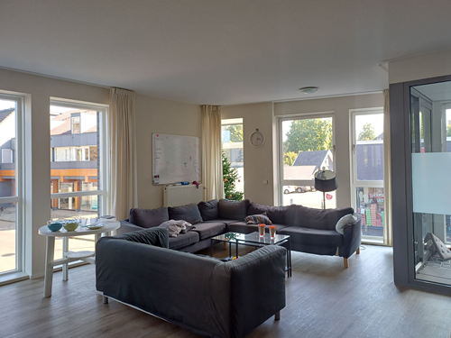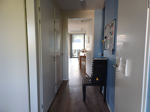 Jados Enschede ligt vrijwel in het centrum, op de eerste verdieping boven enkele winkelpanden, en bestaat uit drie appartementen met in totaal negen studentenkamers; elk appartement heeft een eigen keuken, badkamer en toilet, twee appartementen delen een gemeenschappelijke woon- en eetkamer, er is een balkon en een werkplek voor de begeleiding.